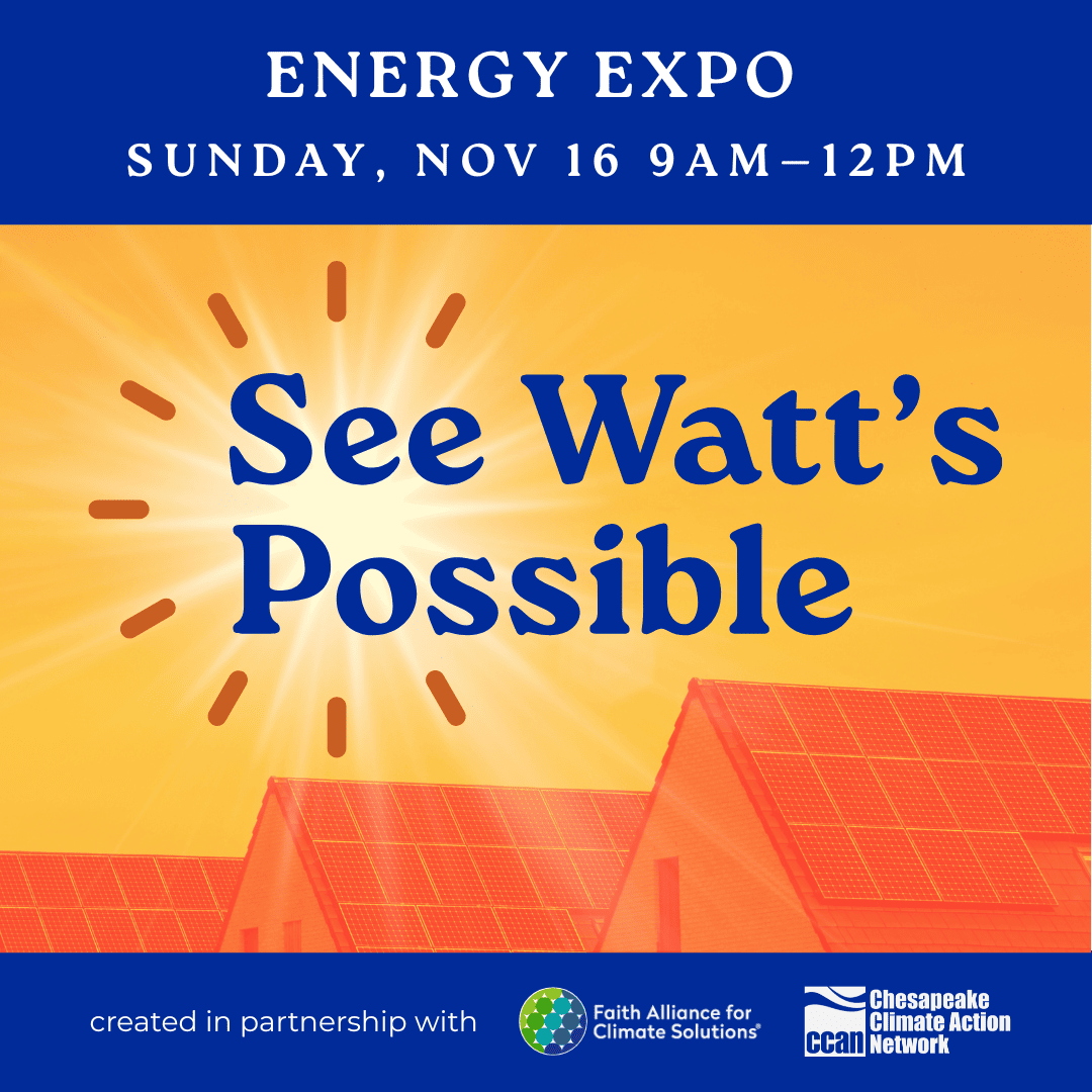 | Successful Energy Showcase at St. Peter’s Episcopal Church On November 16th, FACS partnered with the Chesapeake Climate Action Network (CCAN) to host an energy showcase at St. Peter's Episcopal Church in Arlington. Congregants learned about solar power, heat pumps, water conservation, and other tips on how to save on their utility bills all while enjoying warm apple cider. Interested in hosting a similar event at your congregation? Reach out to FACS’ Community Engagement Associate Caroline Chambers at caroline@faithforclimate.org. |