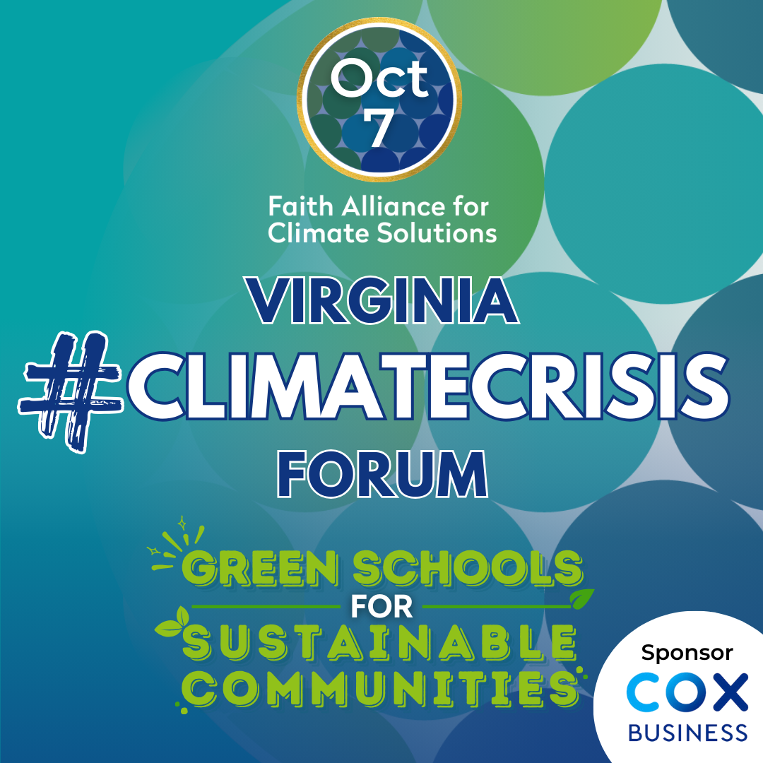 | Next Week—Climate Crisis Forum: Green Schools for Sustainable Communities! This year’s Climate Crisis Forum is all about how our local schools are stepping up to tackle the climate crisis and make a difference in our communities. It's happening on Monday, October 7, 6:00-8:30 PM, at Meridian High School in Falls Church, VA. This event features two dynamic panel discussions: - Northern Virginia Superintendents: How their districts are leading efforts in sustainability, energy efficiency, and climate education and how the community can support further action.